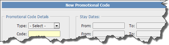 Code: The promotional code. Codes must be unique (RezEasy will not allow duplicates).
